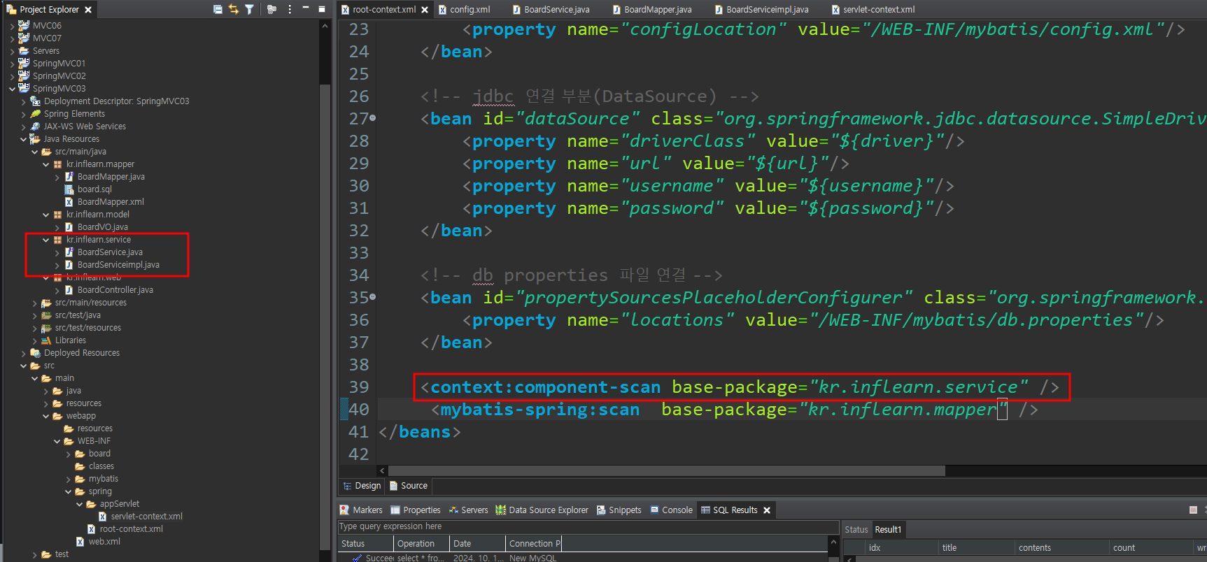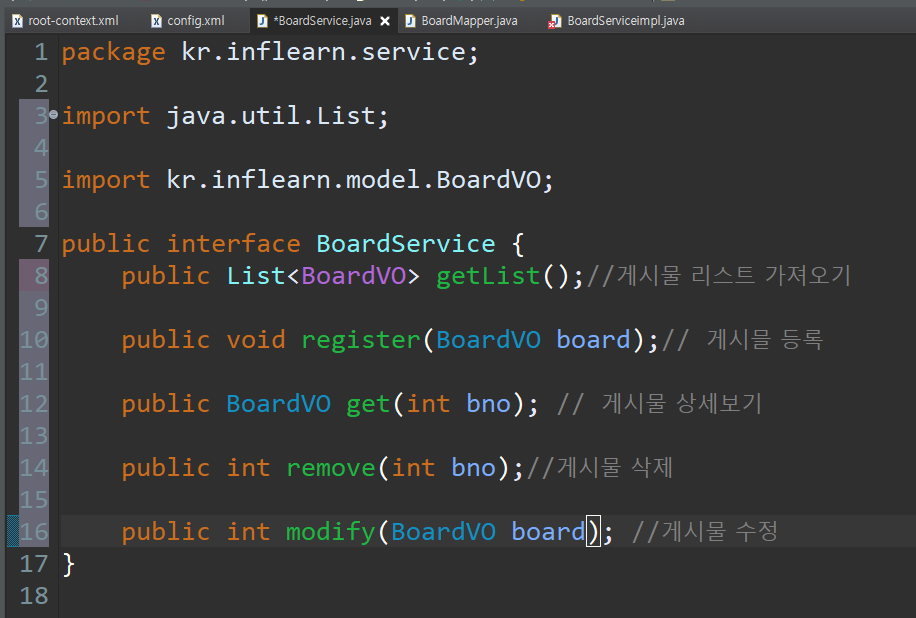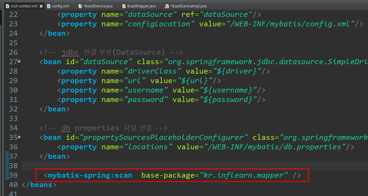 mapper 부분은 데이터베이스 만들때 이미 다 만들어놨기때문에 패스