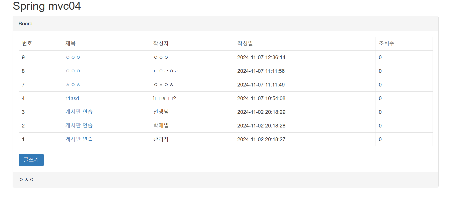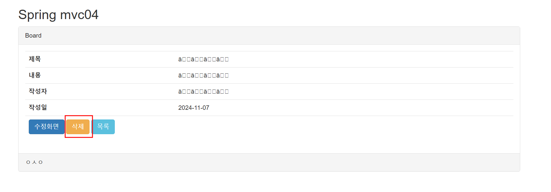 | Spring WEB MVC04 게시판 수정화면 및 수정하기 (0) | 2024.11.07 |