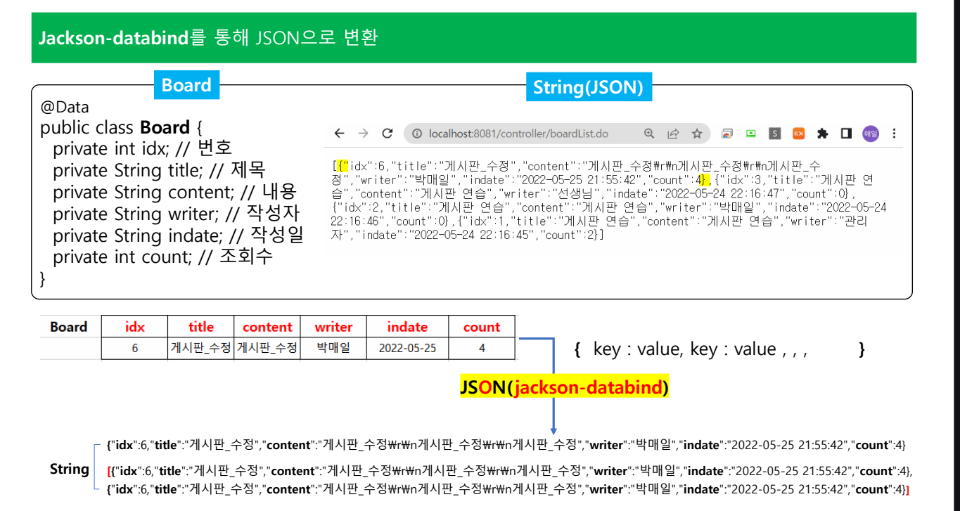 이 데이터를 제이슨 포멧 형식으로 내려줘서 보내줌