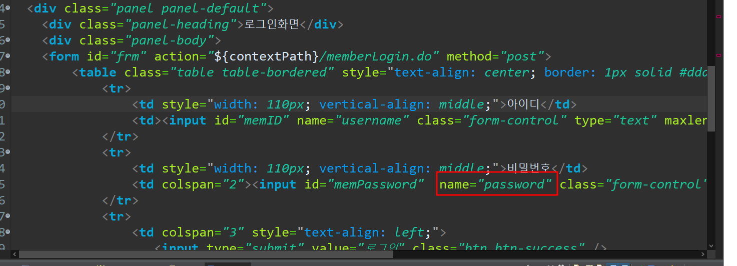 name에 password 속성값을 password로 바꿔야 동작이 된단다 ...