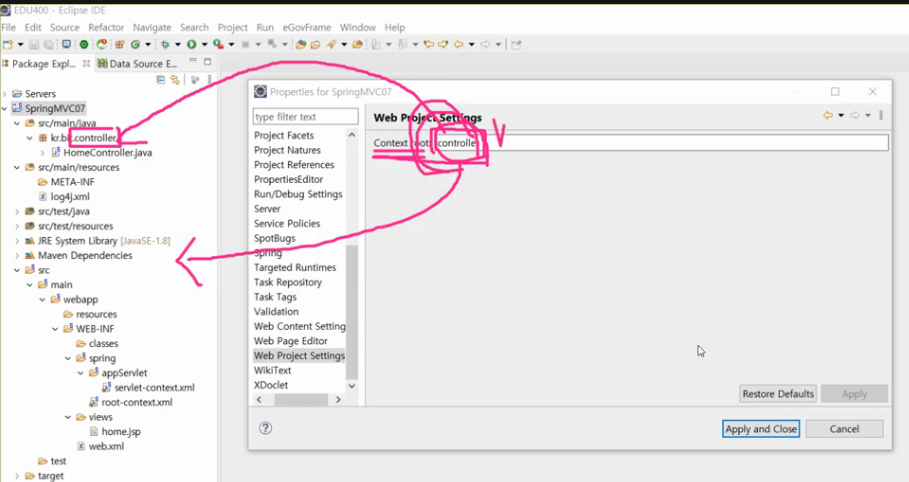 스프링 mvc 프로젝트 클릭