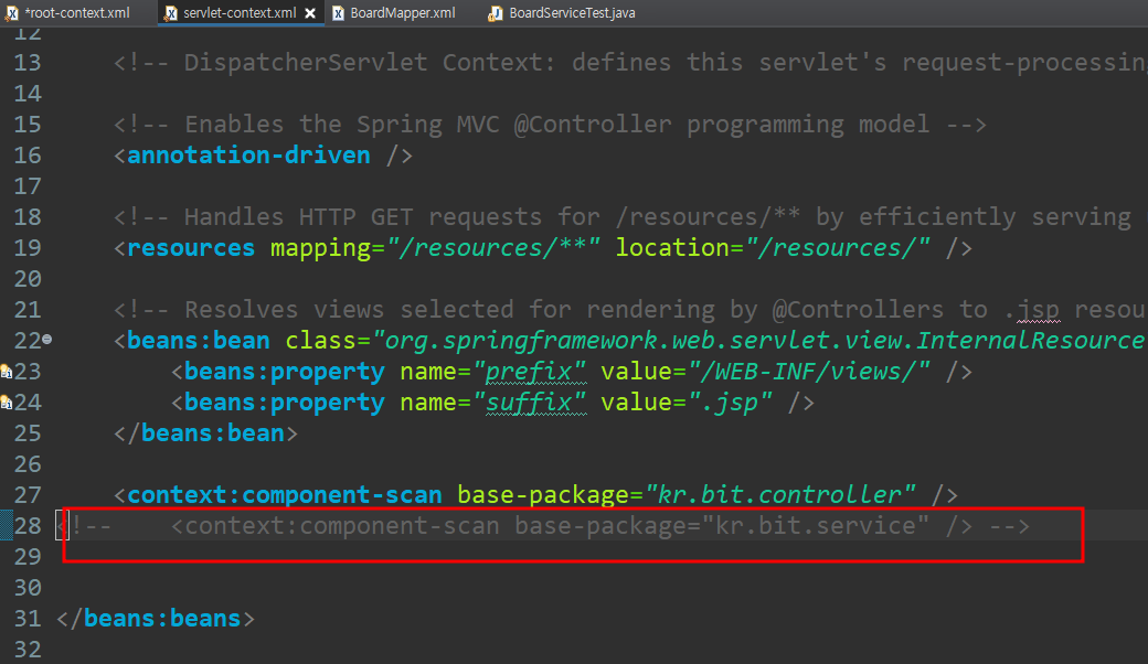 servlet.context.xml에서 주석 처리