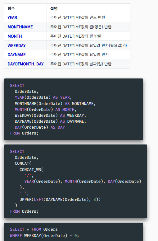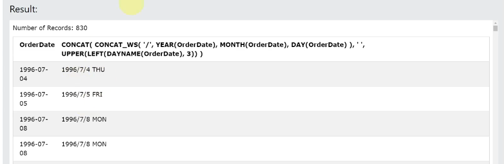 그다음 UPPER 로 요일을 뽑은다음 또 CONCAT로 붙임