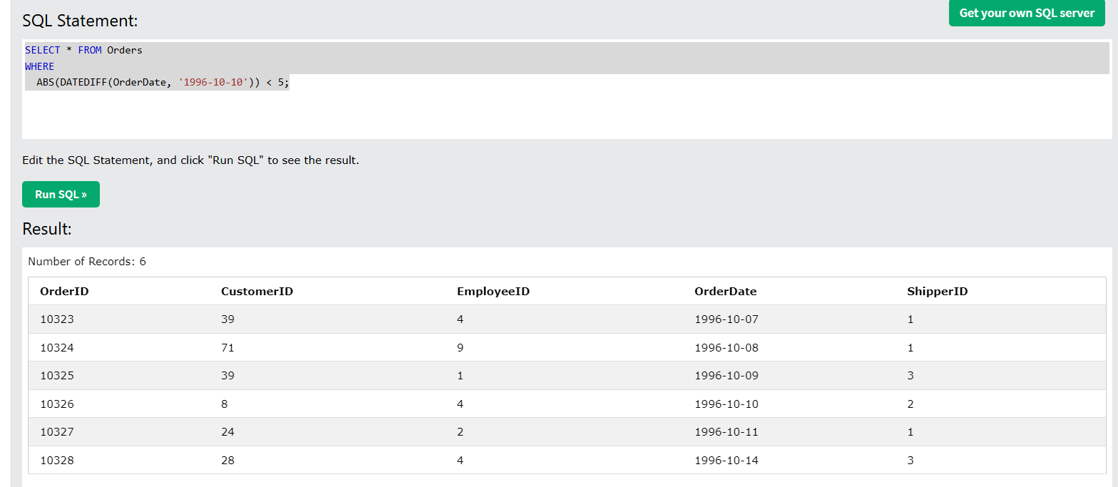 5 보다 작은 절대값은 4 3 2 1 0 -1 -2 -3 -4 사이니깐 1996 10 10 일 기준으로 4일 전 4일 후 값들이 나오게 됨