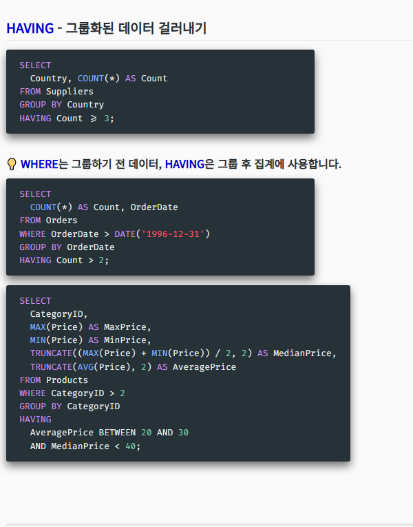 where 절부터 먼저 orderdate 이 날짜 이후인것만 걸러낸다음에 그다음 그룹화를시킨다음 count가 2인것만 나타내라