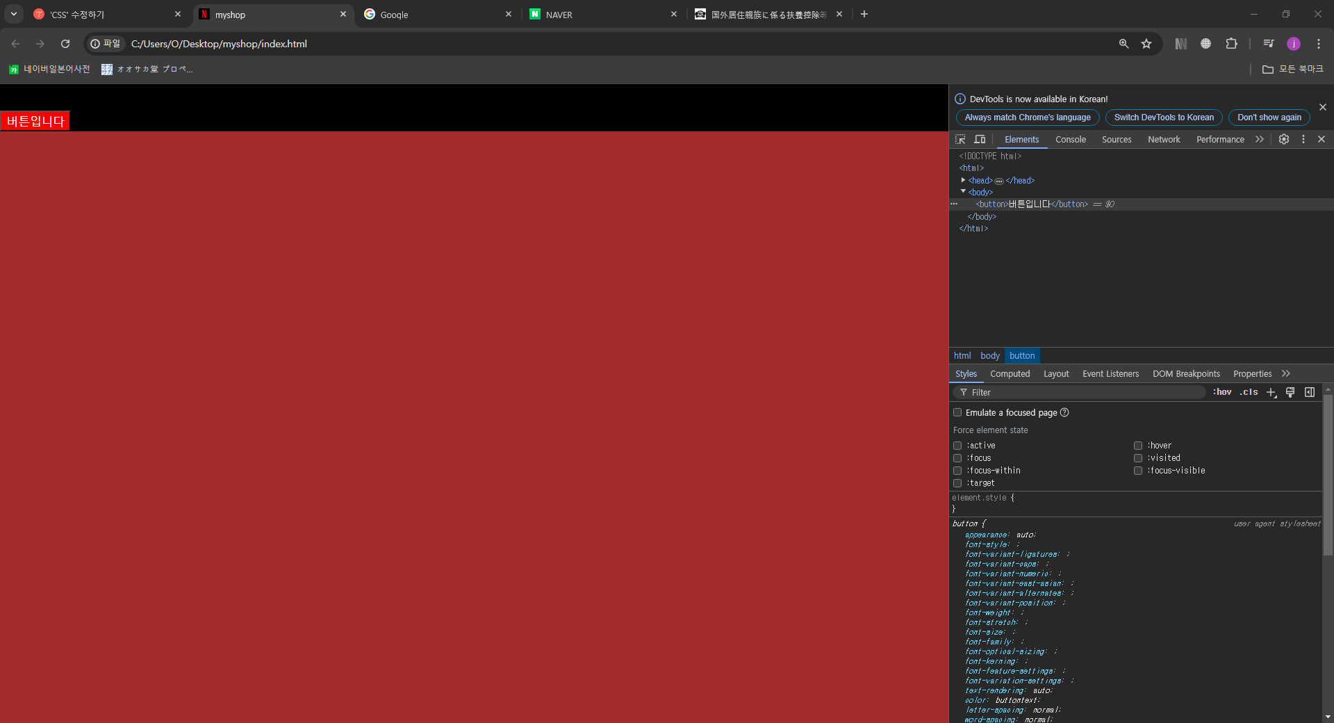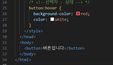 마우스를 올렸을때 백 그라운드 컬러 빨간색 글자는 흰색이된걸 알수 있다